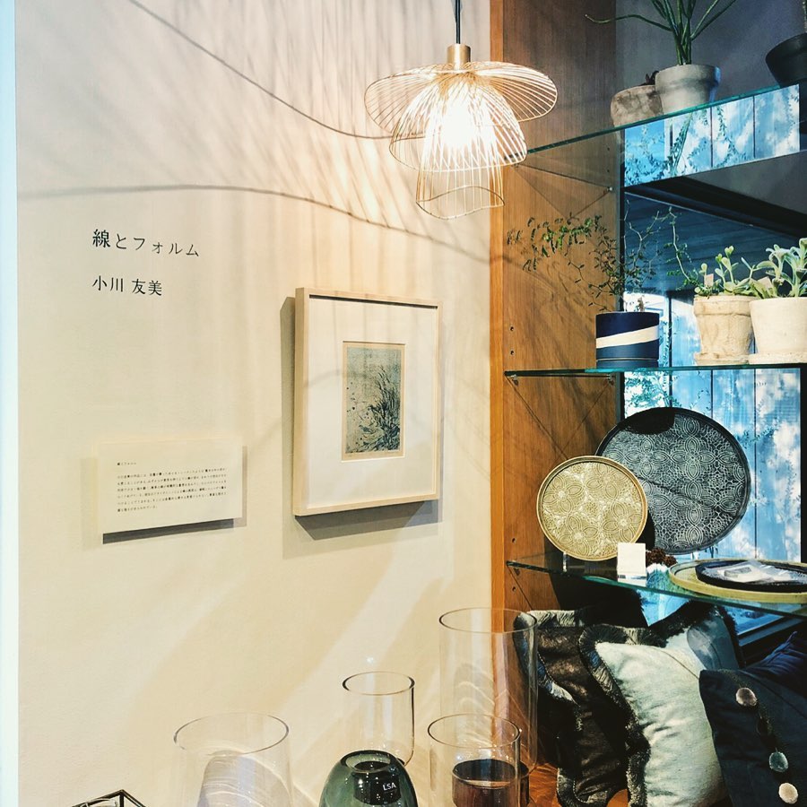 小川友美の作品には、砂塵が舞ったあとをトレースしたような“動きの中の流れ”を感じることがある。みずからが意思を持つように線が流れ、まわりの空白がその作用で小さく揺れ動く。幾多の線が有機的な量感を生みだし、ひとつのフォルムをつくりあげている。彼女のドライポイントによる線の表現は、銅板にひとつずつ傷をつけることでうまれる。そこには金属的な硬さは見受けられない。素直な弱さと頑な強さがあらわれている。